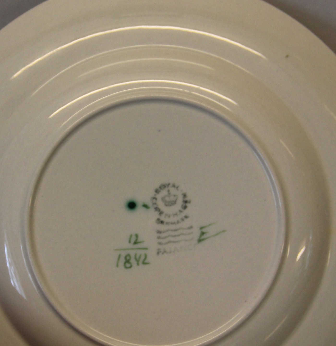 1842-12 Sildetallerken 17 cm Royal Copenhagen Aluminia Grøn Tranquebar I fin og hel stand