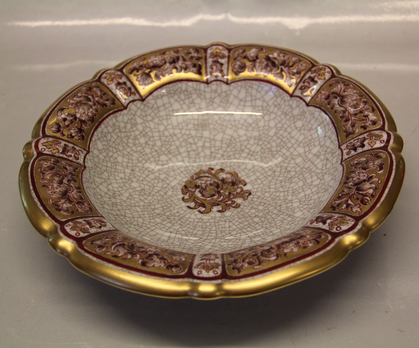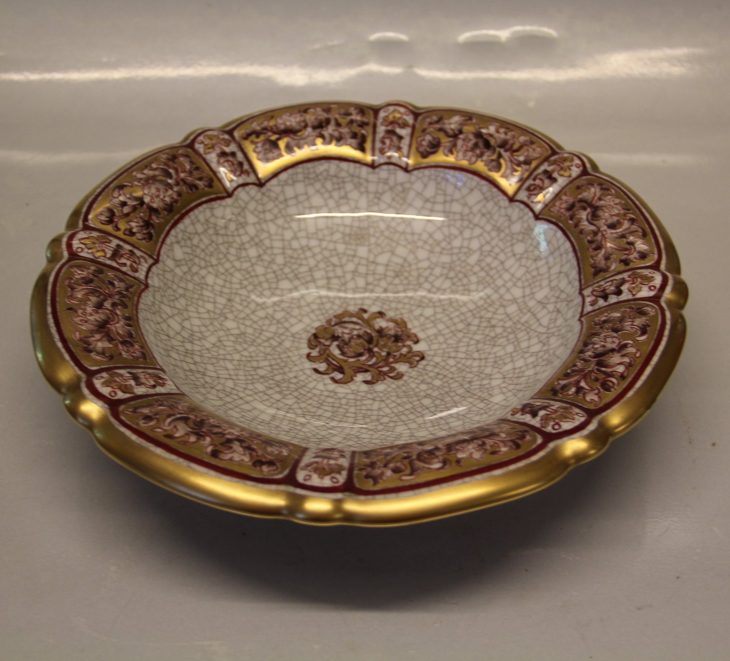 Dahl Jensen Craquelé 115-363 DJ Skål med decoration i brun, rød og gold på grå 7 x 26 cm