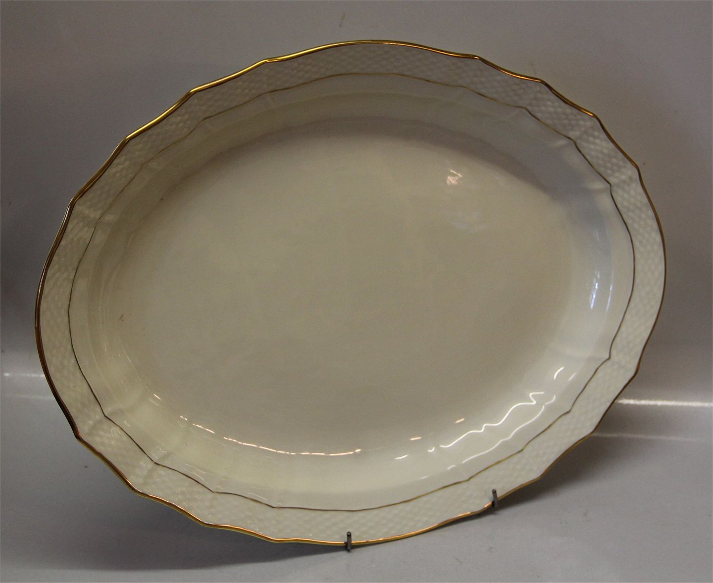 1558-878 Stegefad 44 cm # 878 Kongelig Dansk svejfet stel Crème med ENKELT guldkant Royal Copenhagen I fin og hel stand