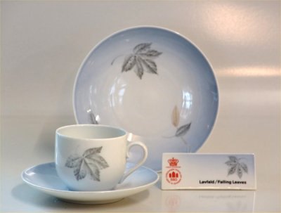 028 A Kagetallerkener 15,8 cm 306 RC (615) Bing & Grøndahl Løvfald - efterårsblade på blåt stel fin og hel stand Falling Leaves