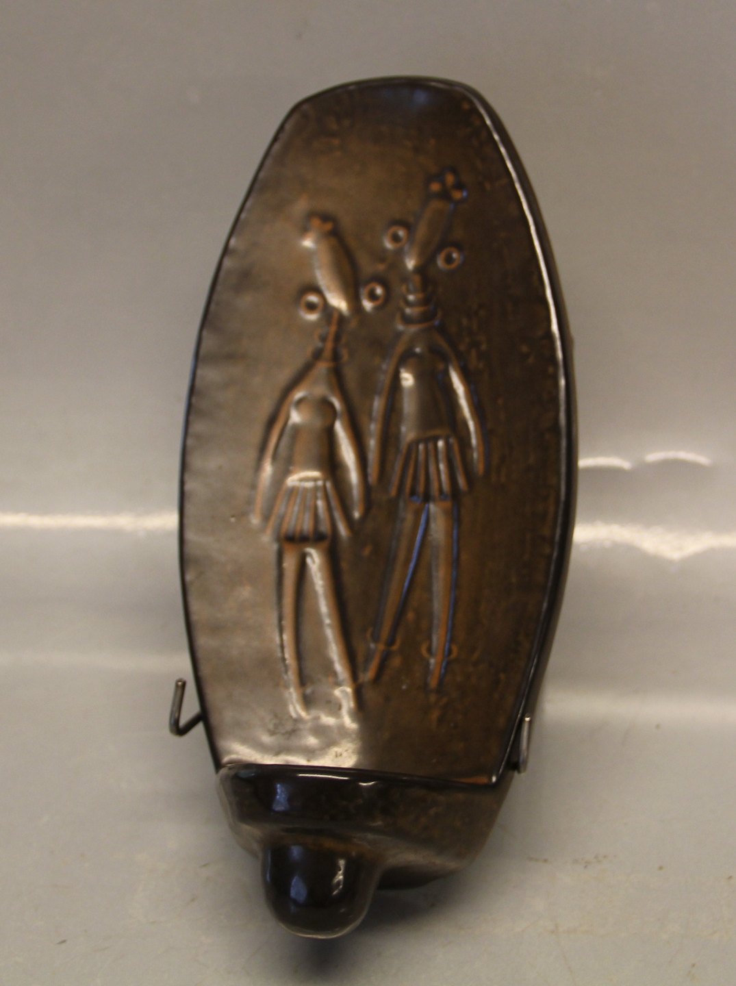Beskrivelse: Keramik Knabstrup Piotr Baro Væglysestage med brun glasur og figurer 24 x 13.5 cm