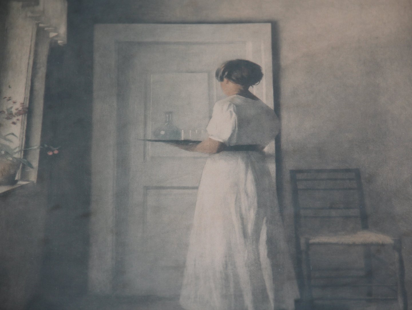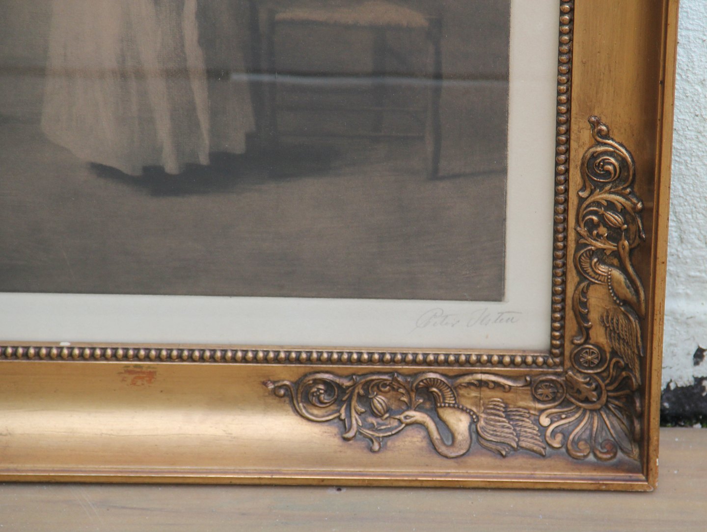 Opus 33. Ung Pige med en Bakke. Peter Ilsted Farvemezzotinte Gl. Guldramme 65 x 55 cm