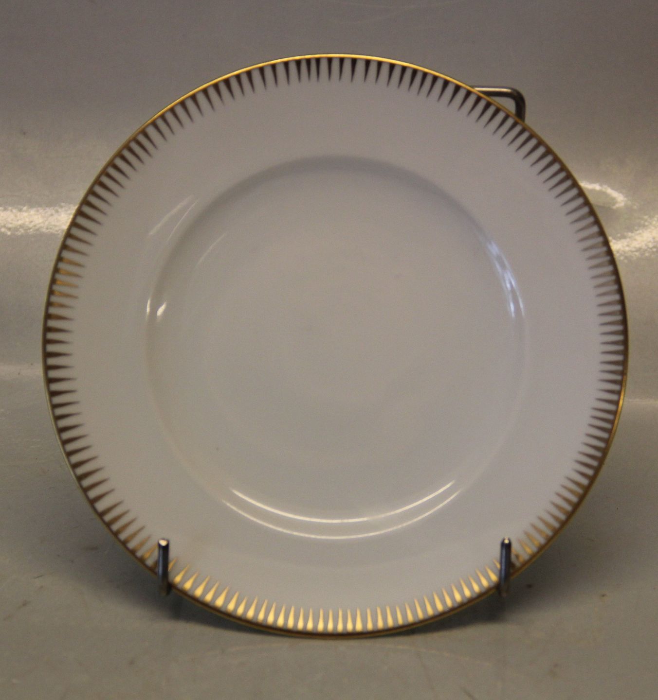 028 a Kagetallerkener 15,5 cm Luna Bing & Grøndahl B&G : Hvidt porcelæn, med pindemønster guldkant, form 601 Helsingør I fin og hel stand.