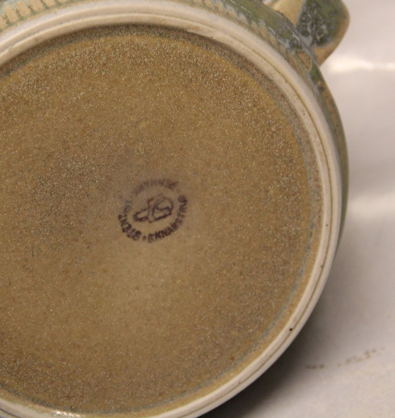 Beskrivelse: Knabstrupstellet, Grøn glasur Tekande 15 x 23 cm