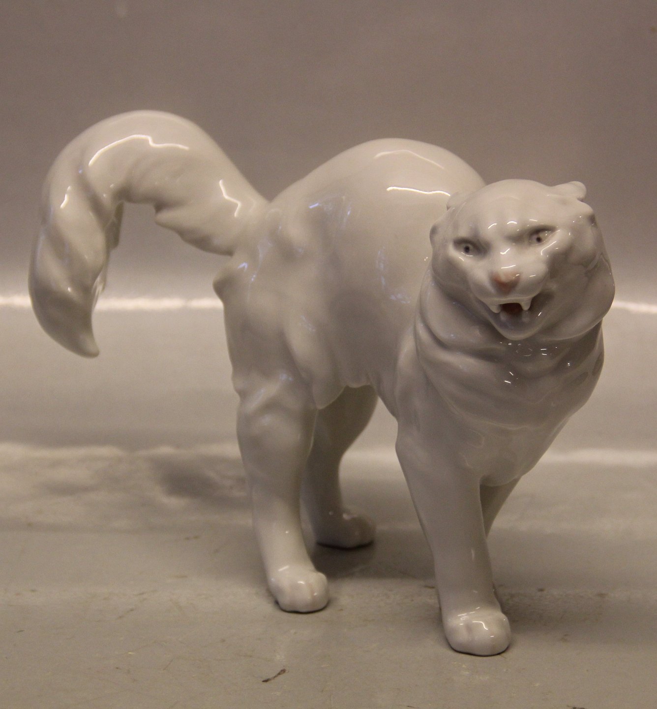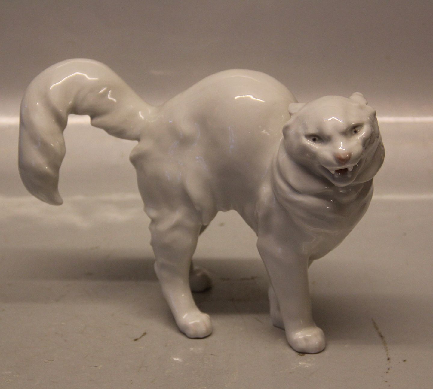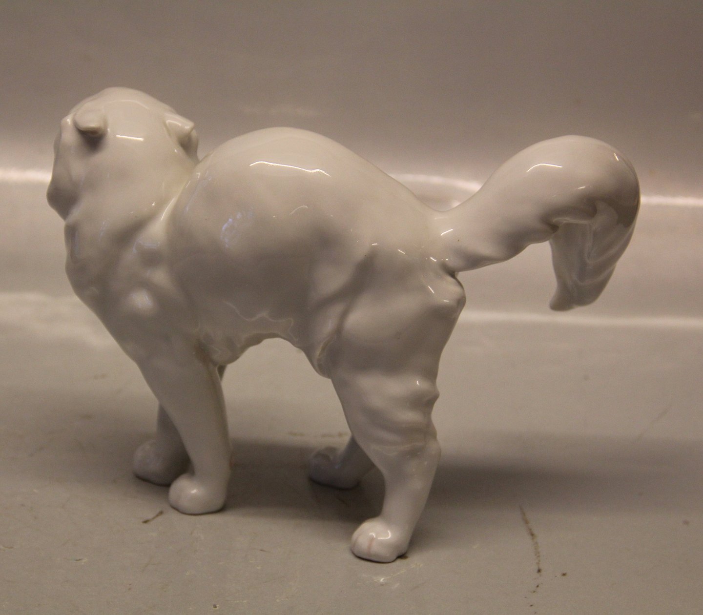 Bing & Grøndahl B&G 1886 Hvid kat med halen i vejret 16 x 23 cm