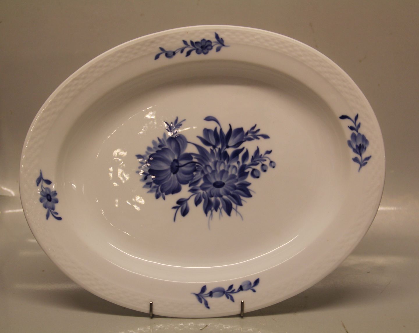 Flettet 8017-10 Ovalt fad 36,5 cm Kongelig Dansk Porcelæn Blå Blomst