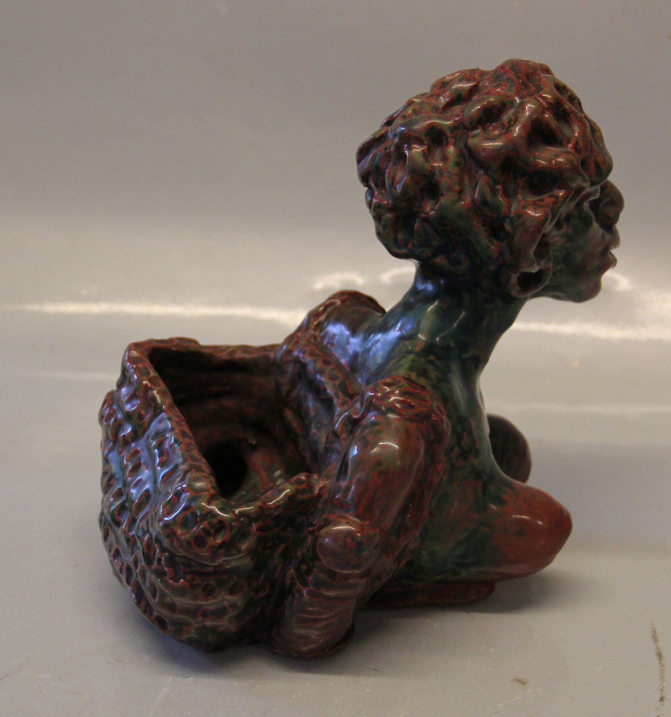 Beskrivelse: Brun glaseret lustre Jens Jacob Bregnøe Keramisk Kvindebuste med kurv. Eget værksted 20 x 23 cm Fin stand -