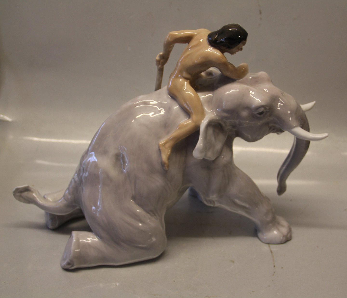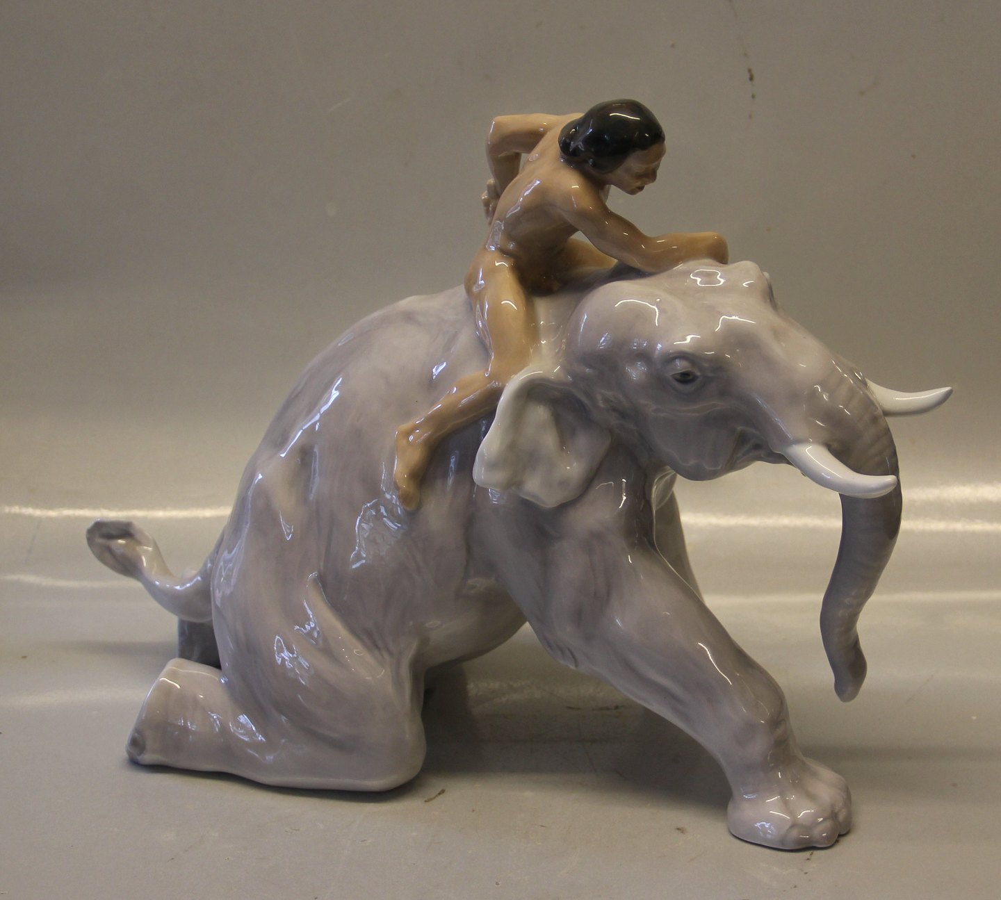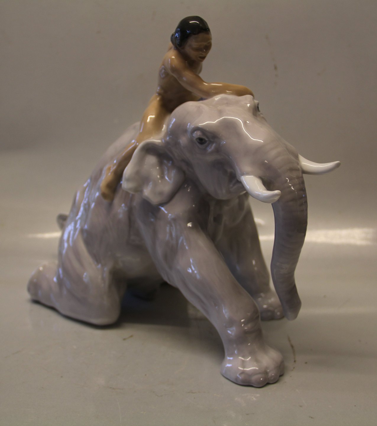 : Bing & Grøndahl B&G 1858 Elefant og Mahout 28 x 37 cm I fin og hel stand.