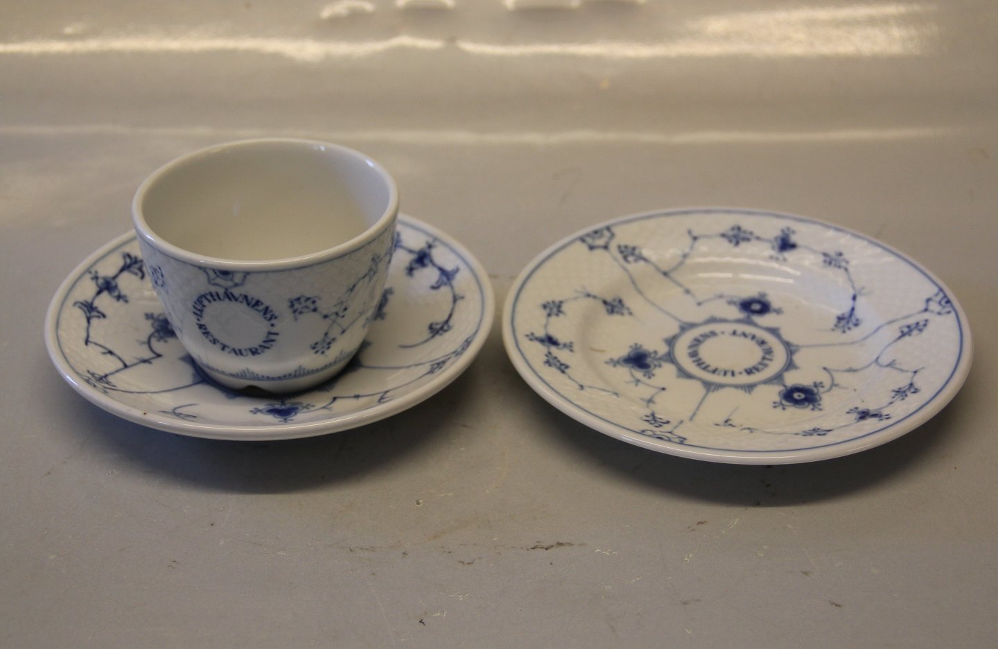 747 Stor kaffekop 6 x 9 cm og underkop 15 cm (746-1023 - RC 2011) logo Lufthavnens Restuarant Bing & Grøndahl Jernporcelæn Blåmalet - musselmalet - musling - Kraftigt hotelporcelæn I fin og hel stand.