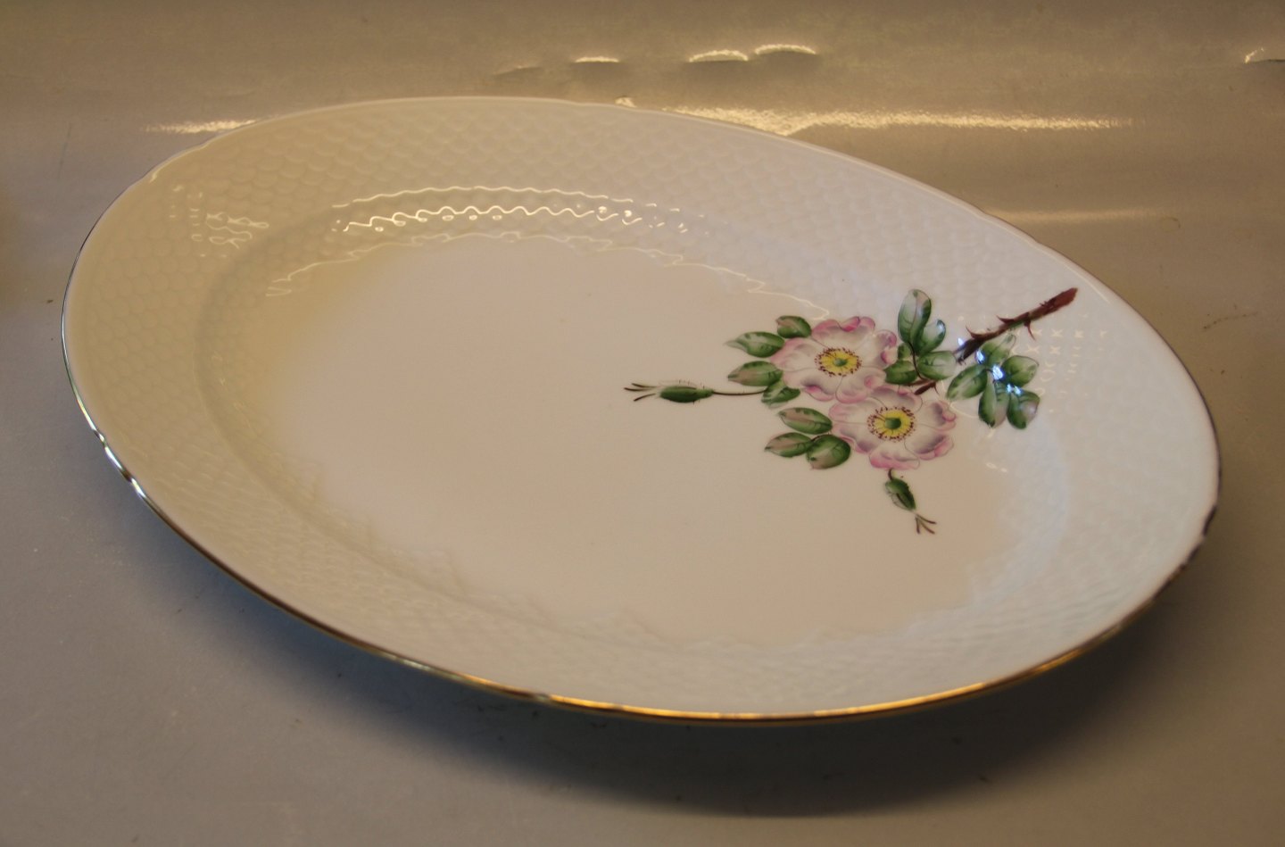 B&G Victor Hugo - vild rose på hvidt porcelæn med guldkant 015 Stort ovalt stegefad 40,5 cm (315)