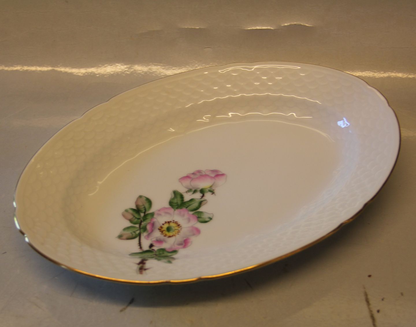 B&G Victor Hugo - vild rose på hvidt porcelæn med guldkant 018 Ovalt fad 26 cm