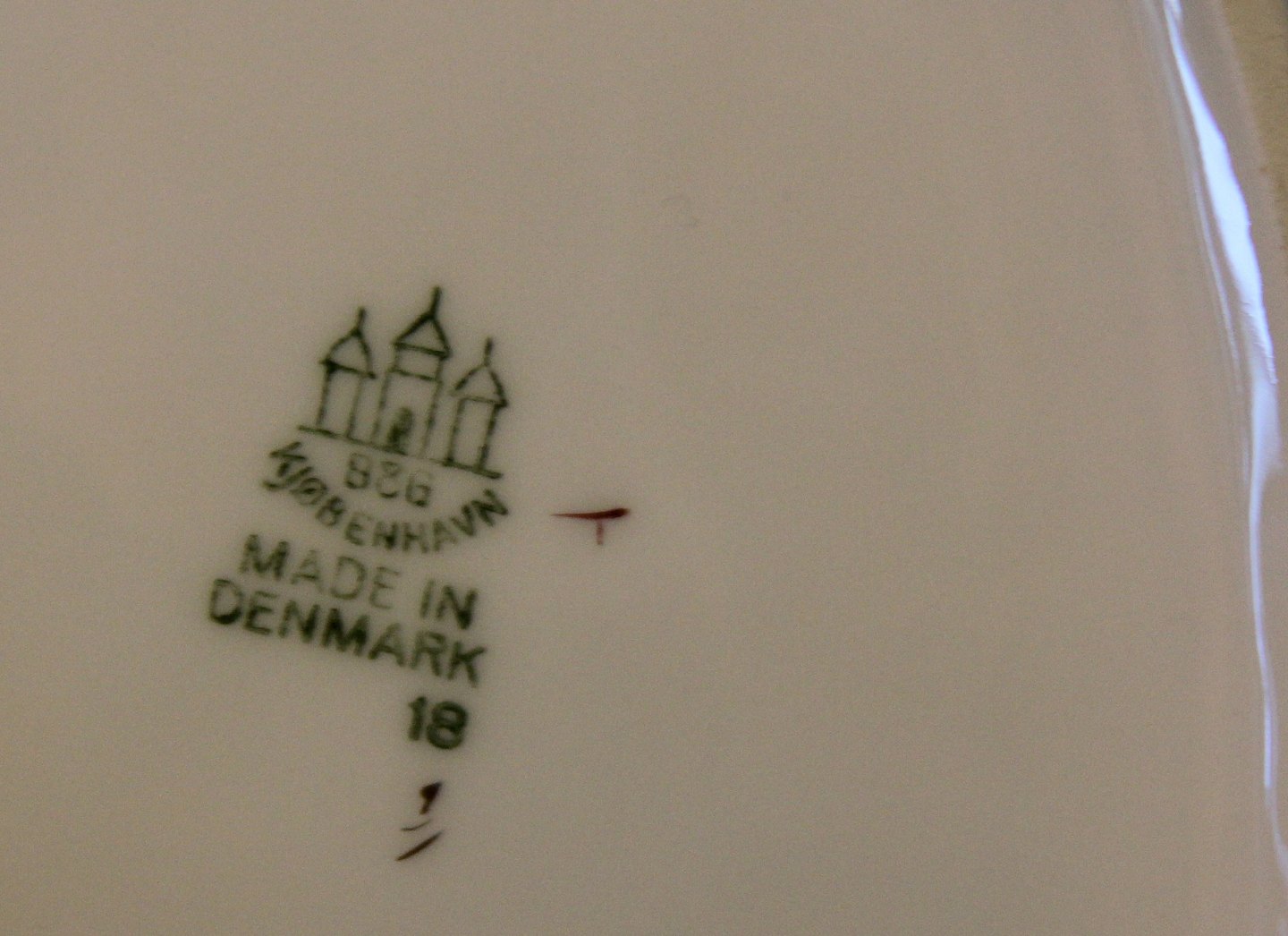 018 Ovalt fad 26 cm Bing & Grøndahl Victor Hugo vild rose på hvidt porcelæn med og guldkant, form 356 I fin og hel stand