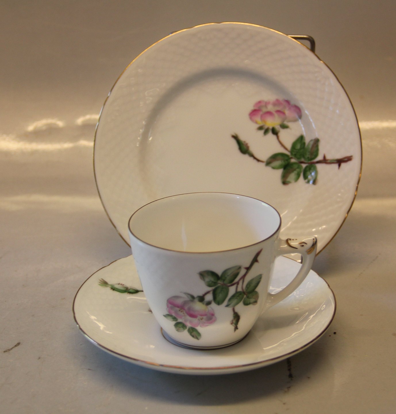 B&G Victor Hugo - vild rose på hvidt porcelæn med guldkant 102 Kaffekop og underkop (305)