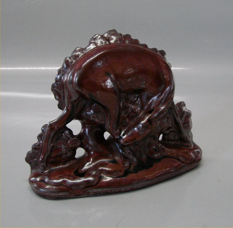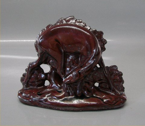 Beskrivelse: Royal Copenhagen Rød Okseblodsglasur stentøj Art Deco Kgl. 2051 Rådyr på fod HHH 1919 13 x 17 cm I fin og hel stand