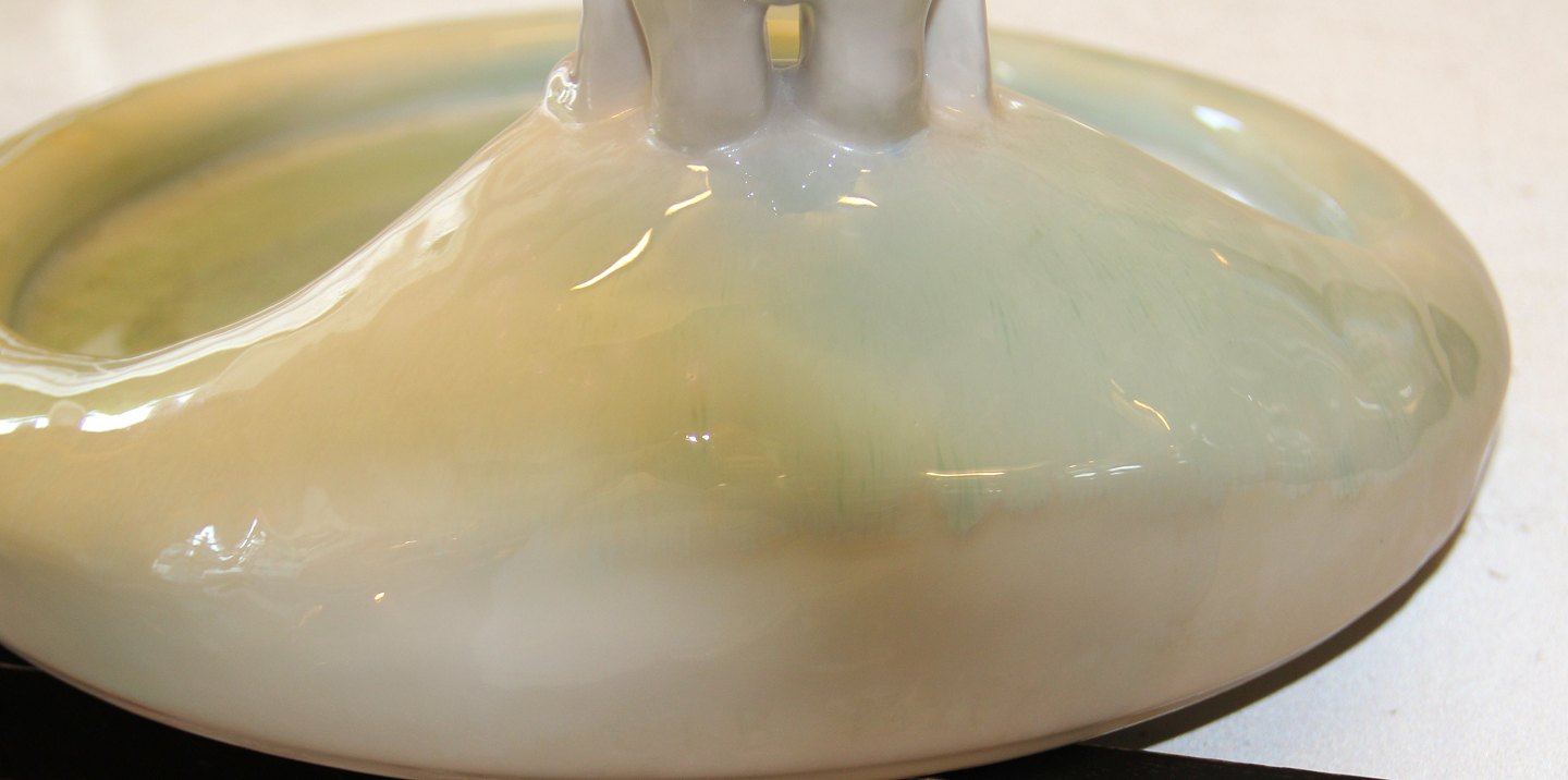 Kongelig Dansk Nordpolen fad med en isbjørn 32 x 20 cm Carl Johan Bonnesen 1921. Krystal isglasur Søren Berg 2-10-1926