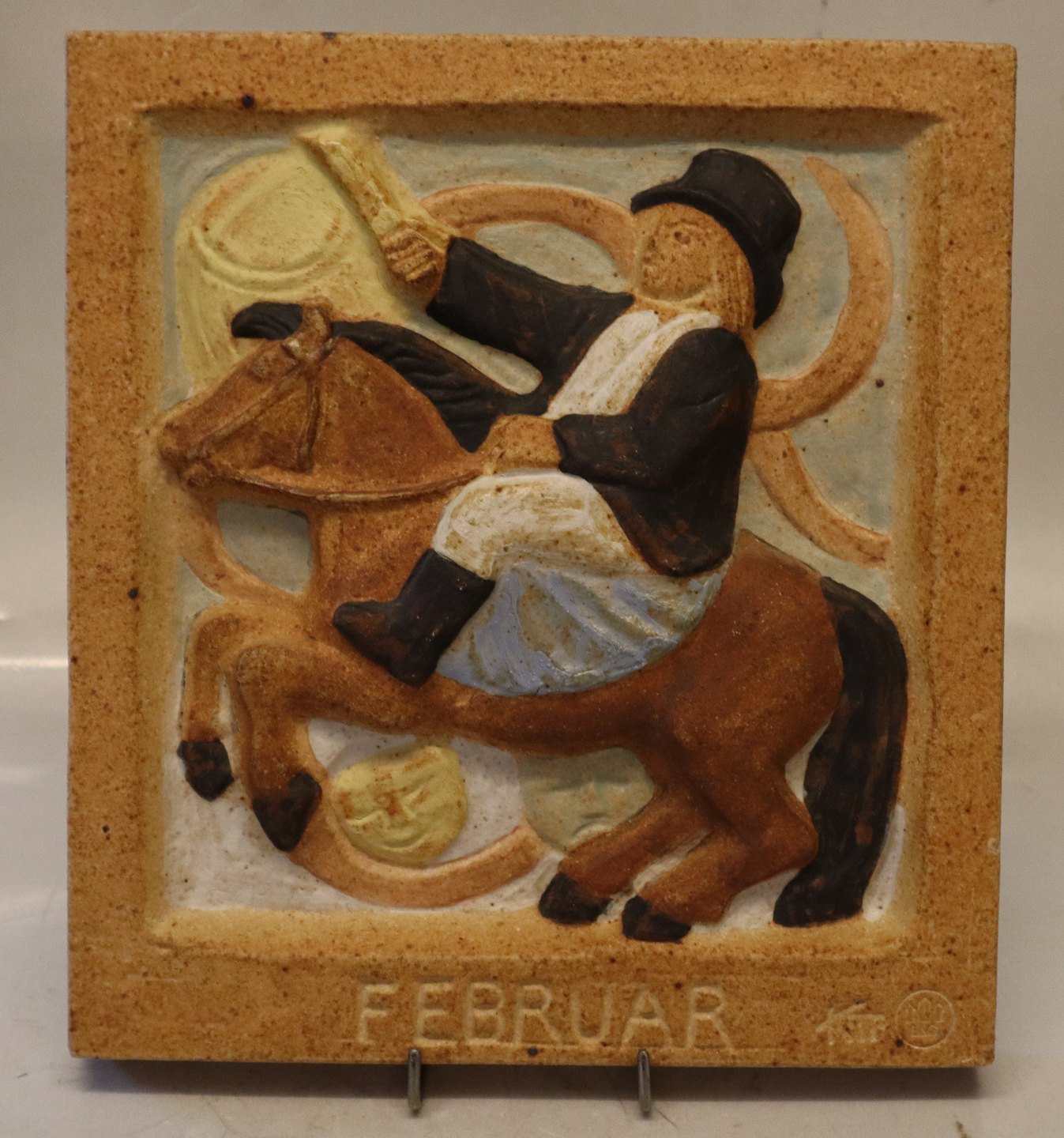 Beskrivelse: Bing & Grøndahl stentøj B&G 7102 Februar relief 23,5 cm, Karl Otto Johansen Signeret K. Otto. I fin og hel stand Bing & Groendahl