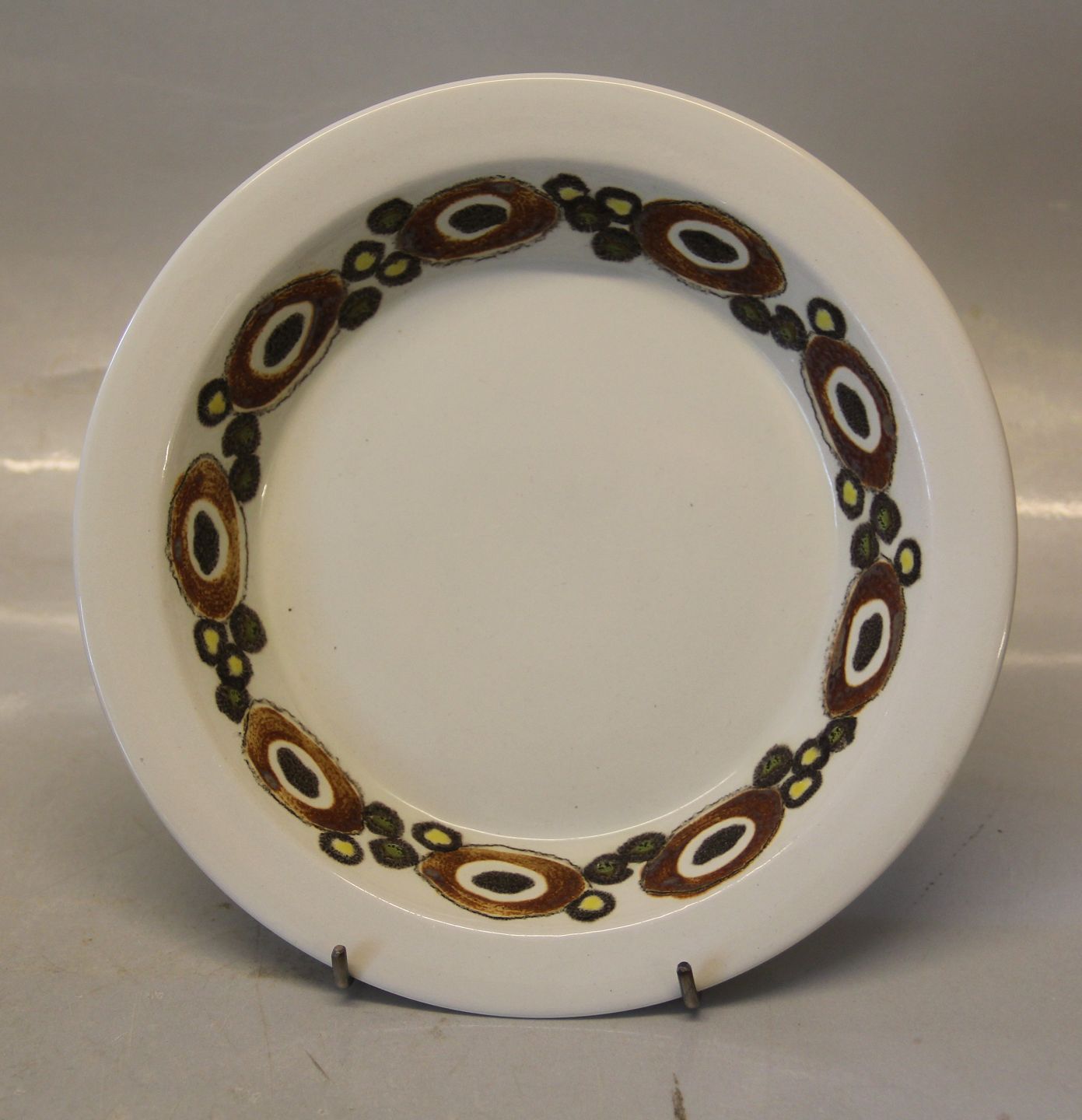 3464 Lille dyb tallerken 18,8 cm, brun Nucella Aluminia Fajance Nucella Stelform 1589 V.T.N af Inge-Lise Kofoed og Leif Lautrup-Larsen. 1966 Dekoration: Nucella af Ellen Malmer - blå eller brungule farver - fra 1969 Baca dekoration Royal Copenhagen Fajance