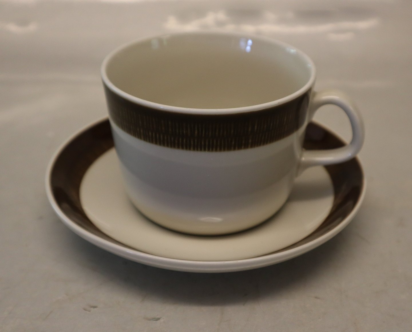 Tea cup 7 x 9.5 cm with saucer Brown Koka Roerstrand Swedish Retro Tableware Design Hertha Bengtson, 1956. Rörstrand