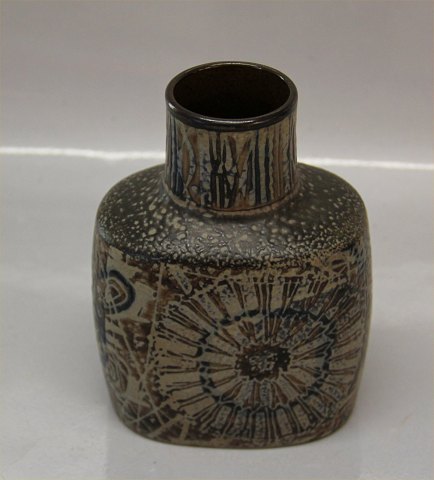 Beskrivelse: Royal Copenhagen Aluminia Baca fajance 870-3207 Brun Vase 13.5 cm Nils Thorson Baca 1972