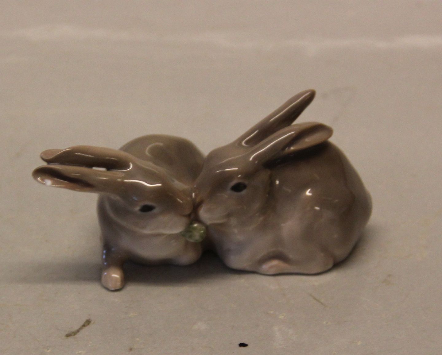 Beskrivelse: Kgl. figur 0518 - 1252 Par brune kaniner 5 x 10 cm, Arnold Krog 1895 Farvevariation #1252 fra Royal Copenhagen I hel og fin stand