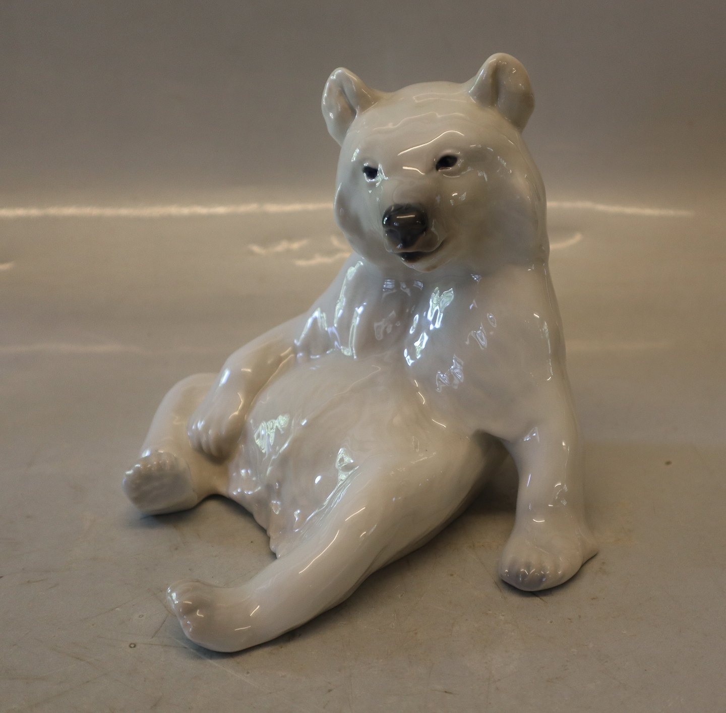Beskrivelse: 0345 Kgl Bjørn - hvid isbjørn version 16 x 16 cm Hermissen? 1901 fra Royal Copenhagen I hel og fin stand