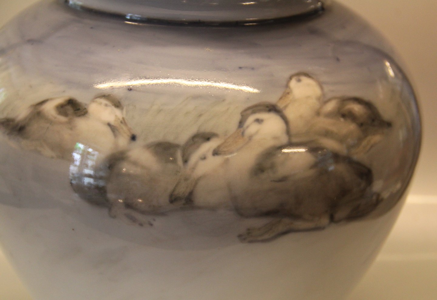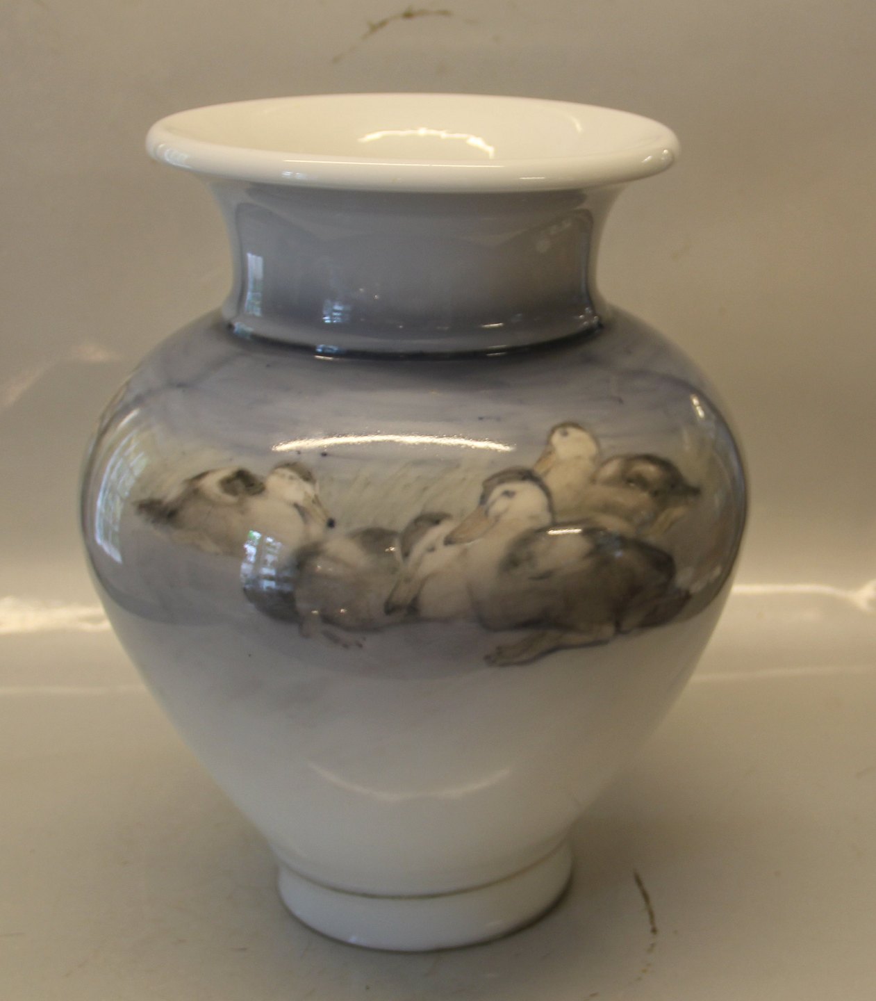 Kongelig Dansk Kgl. Unikavase 15/1 1920 Vilhelm Theodor Fischer Dekoreret med ænder 32.5 cm