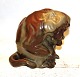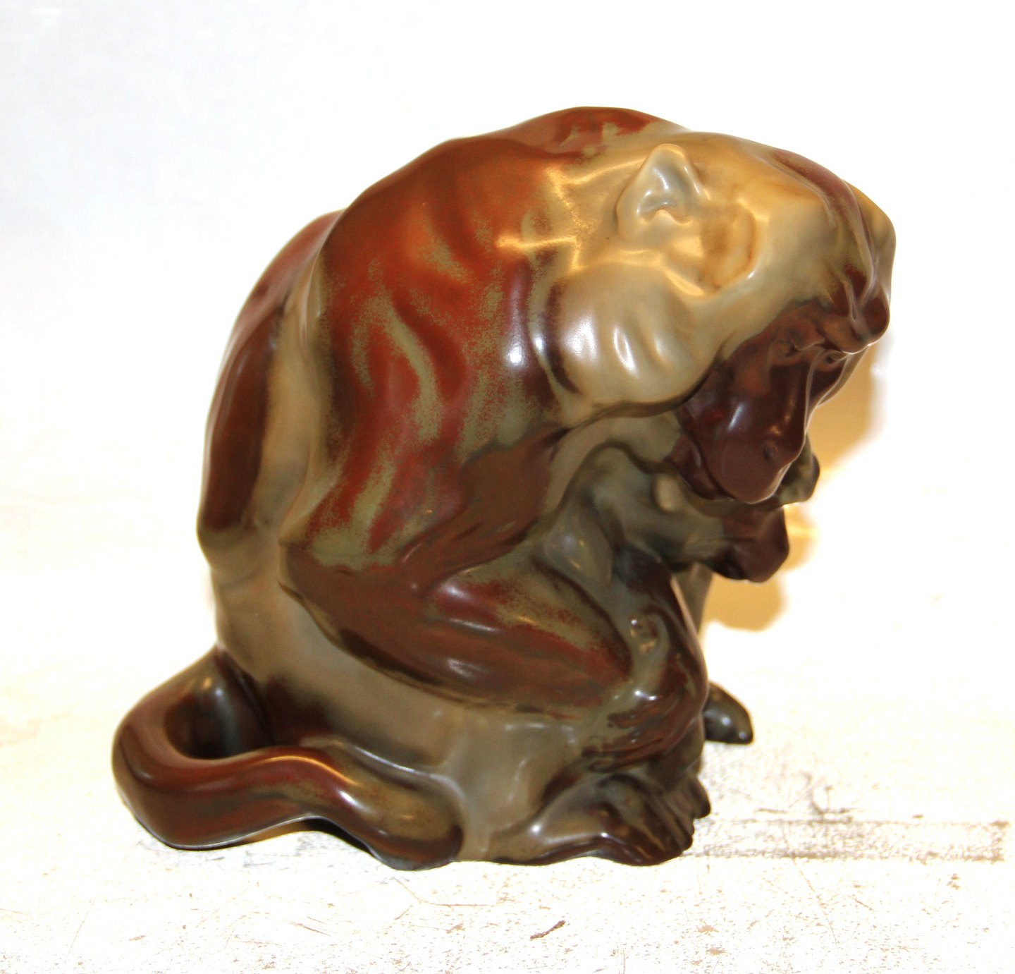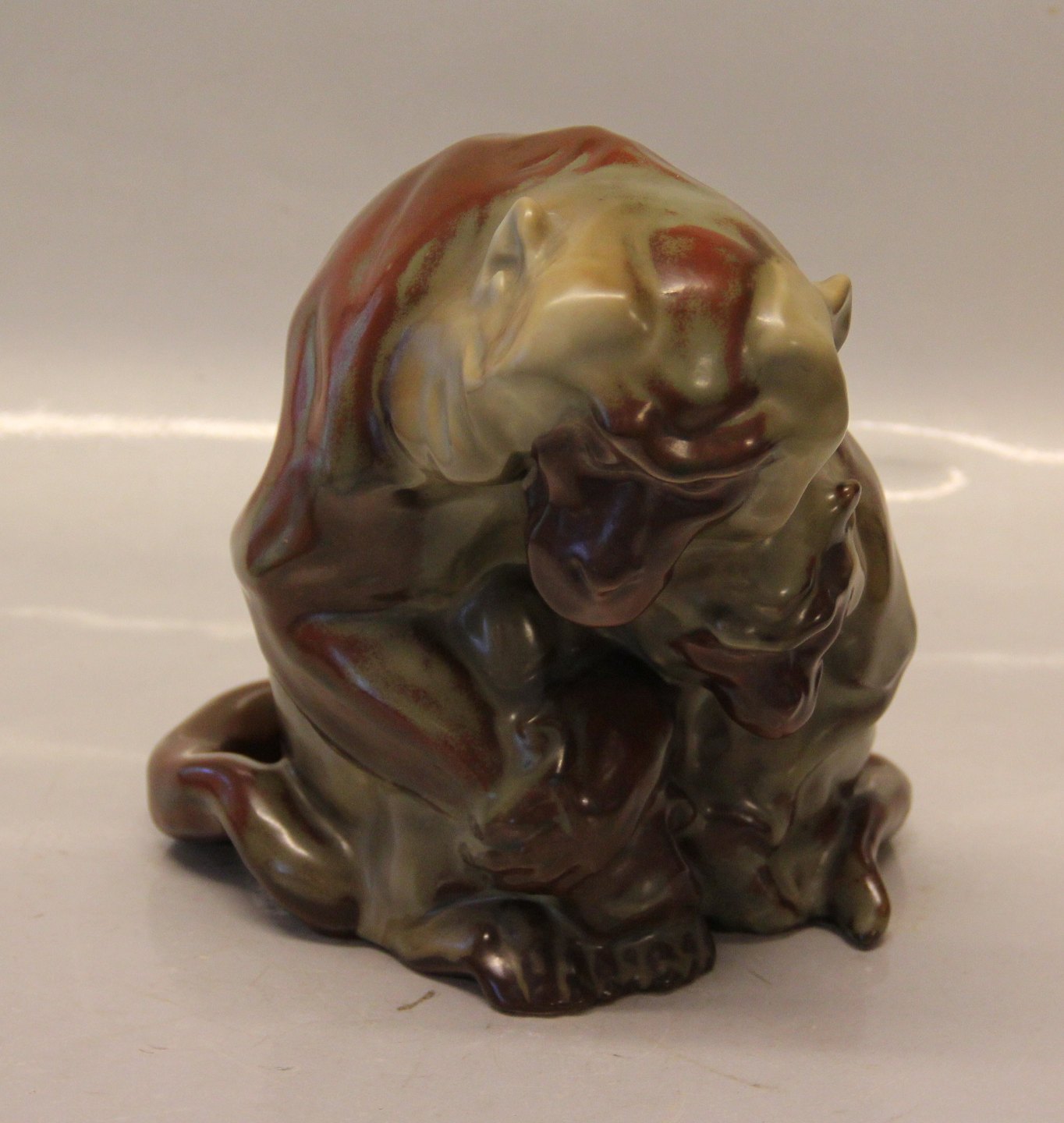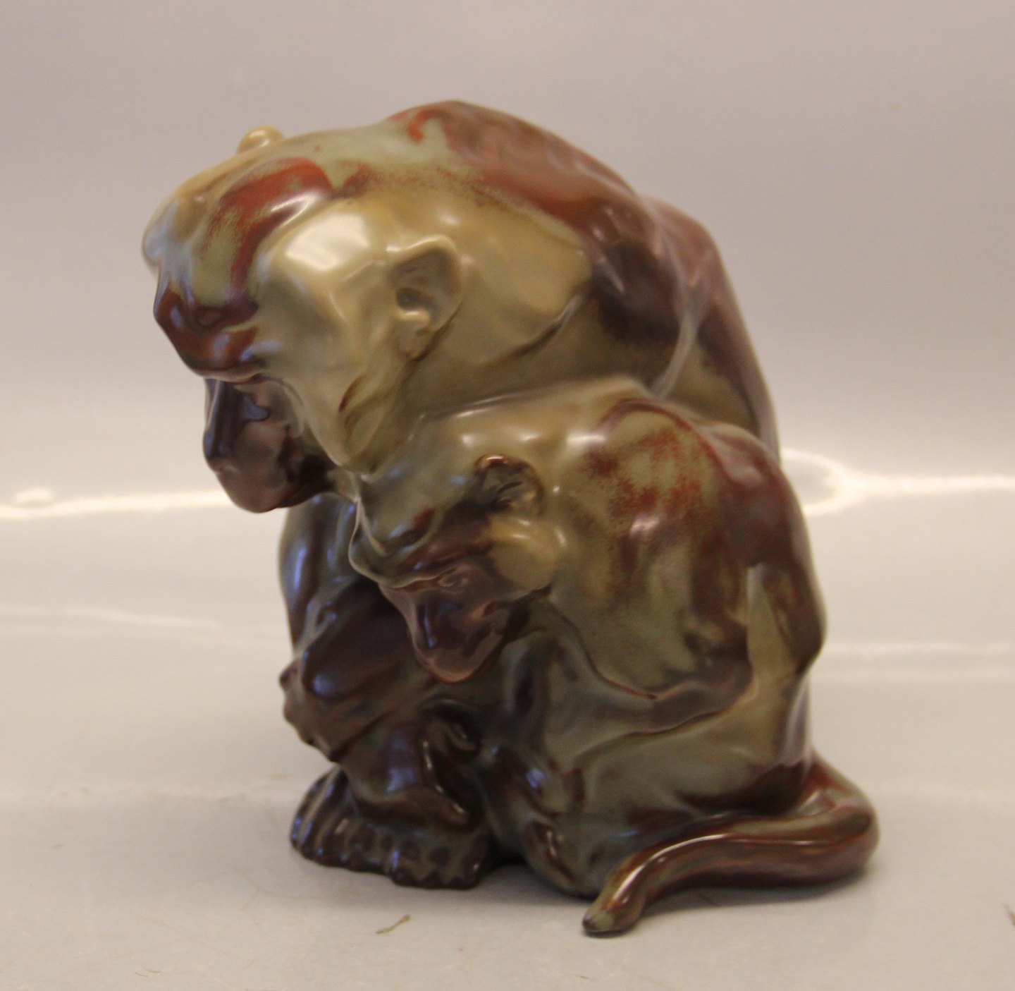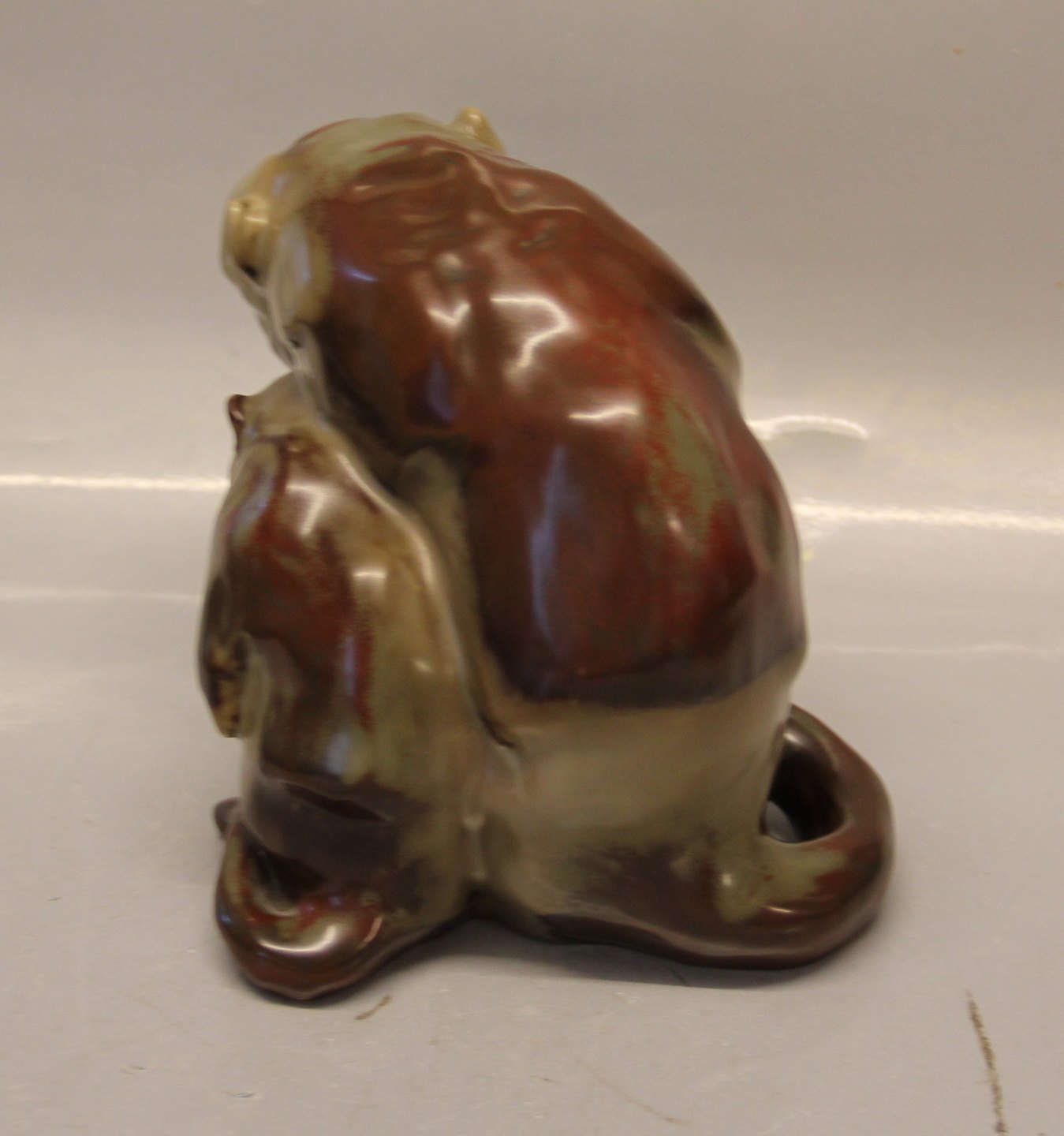 Beskrivelse: Sjælden Bing & Grøndahl stentøj B&G 0008 Abefamilie - Mor med unge 18 x 20 cm Knud Kyhn K348 I fin og hel stand Bing & Groendahl
