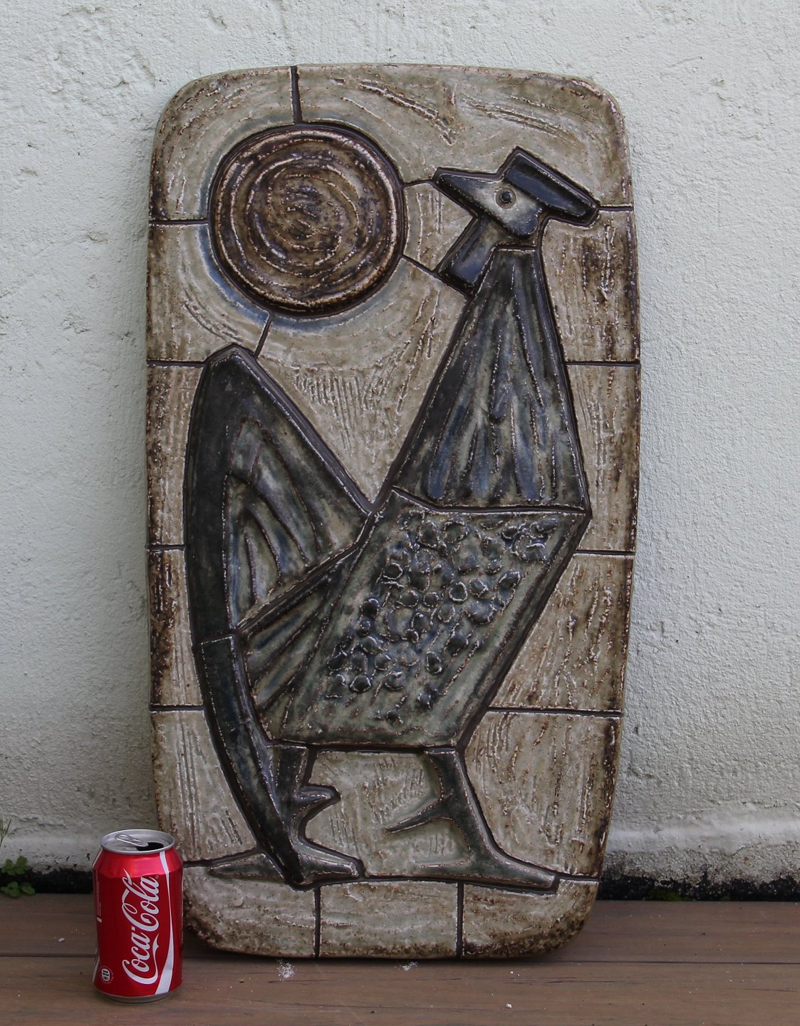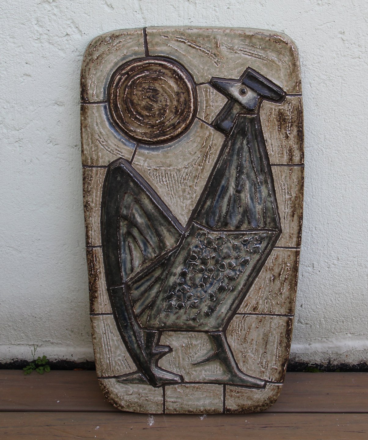 Kongelig Dansk Stentøj Kgl. Relief Hanegal til morgensolen 66 x 38 cm JM Jørgen Mogensen
