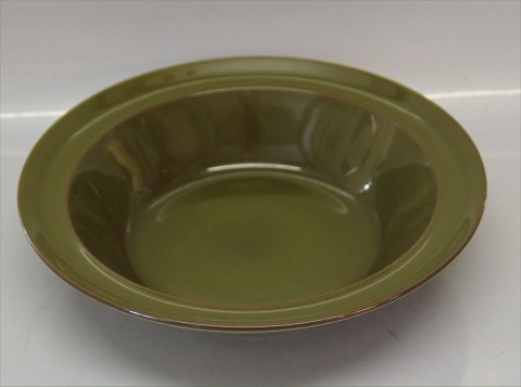 Skål med kant 5,5 x 24 cm Royal Copenhagen Aluminia fajance Timiana (Grøn) 1960-1969 på spisestelstelform Prunella designet af arkitekt Magnus Stephensen 1958