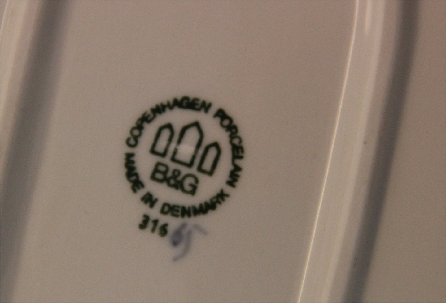 Sahara 316 Oval dish 33 cm (016) B&G White base, brown and blue lines