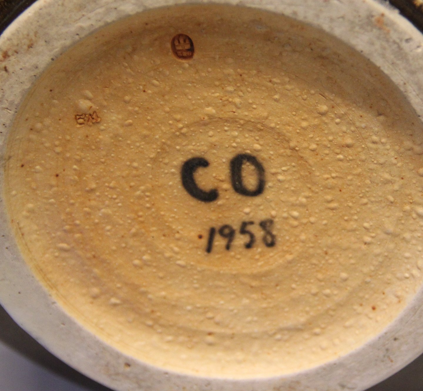 Dansk Stentøj B&G Klassisk stentøjskrukke med hanke Signeret CO 1958 Cathinka Olsen 31 c