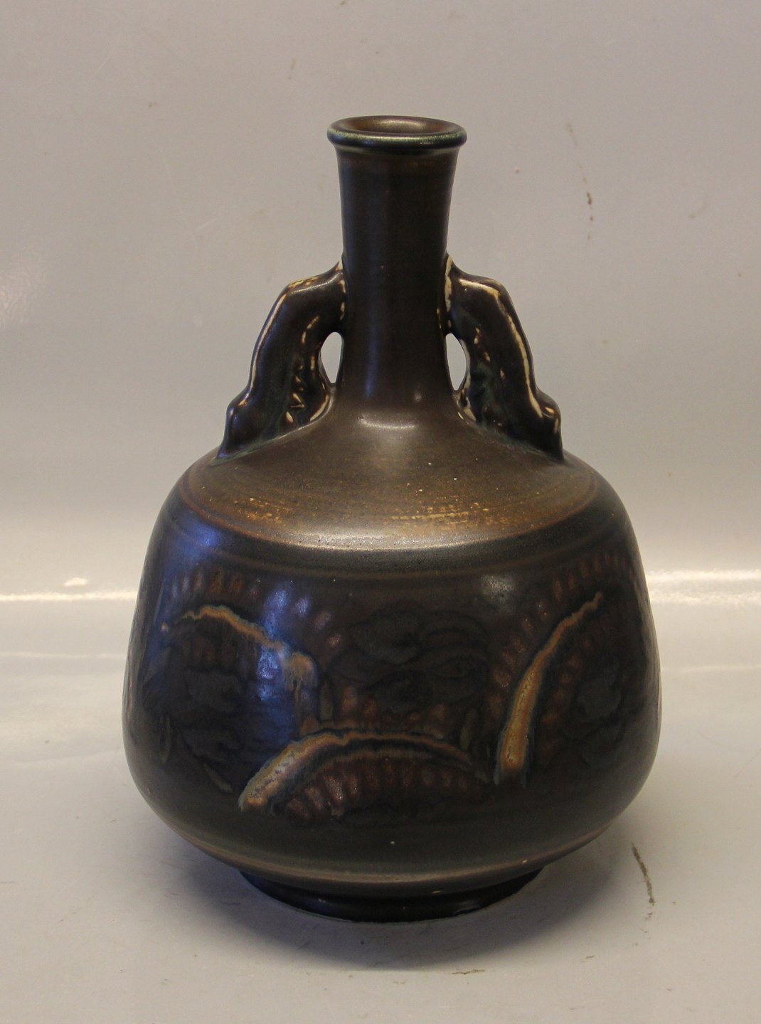 Beskrivelse: B&G Klassisk stentøjskrukke med hanke Signeret CO 1958 Cathinka Olsen 31 cm Bing & Grøndahl stentøj I fin og hel stand Bing & Groendahl