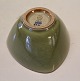 Beskrivelse: Royal Copenhagen stentøj 2761 Kgl. Celadon trekantet skål med relief: "Hoved" ca 7 x 13 cm Jais Nielsen November 1926 Krakkelering se billeder