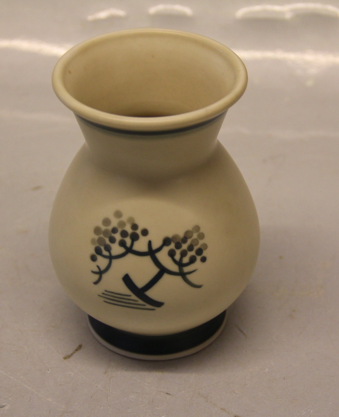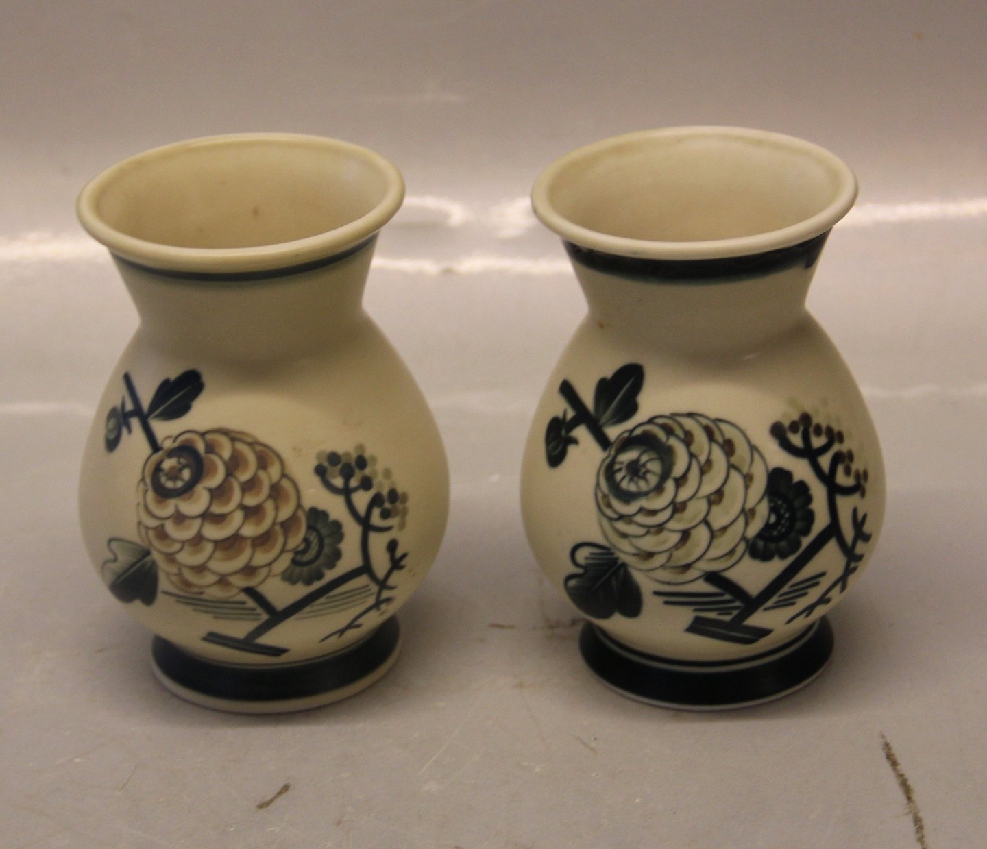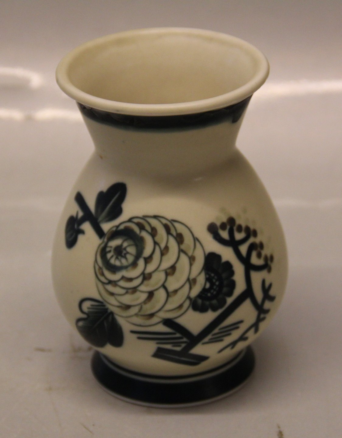 001-28 Kgl.Vase 12.5 cm (1927) med blomster og brombær Royal Copenhagen Aluminia fajance Mat Porcelæn