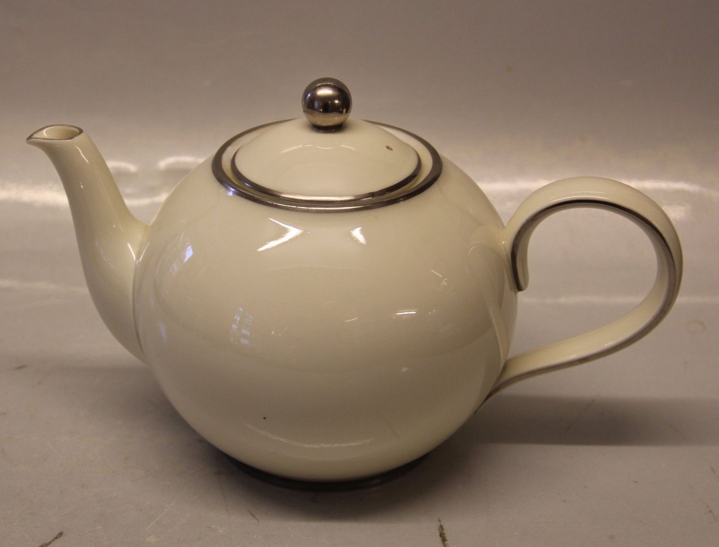 092 Tekande, (mellem) 7,5 dl  (654) Alladin Bing & Grøndahl B&G : Creme porcelæn med platin kant, form 612 I fin og hel stand.
