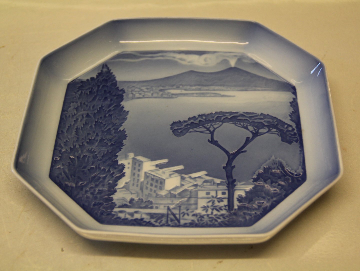 Beskrivelse: Bing og Grøndahl Ottekantet 19.5 cm Alfabet Platte N - for Napoli i Italien Designet i 1933-1934 af Ove Larsen