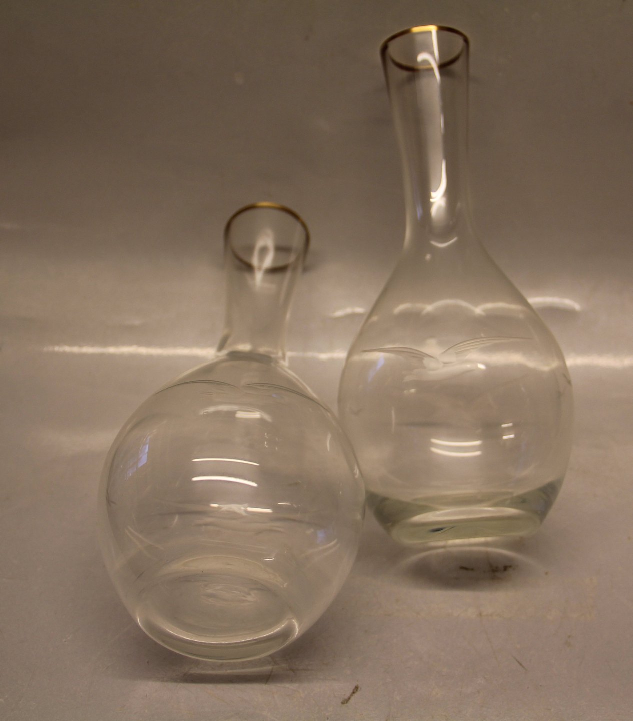 Karafler til Mågeglas fra Lyngby glasværk ca 24.5 cm med guldkant og slebne måger