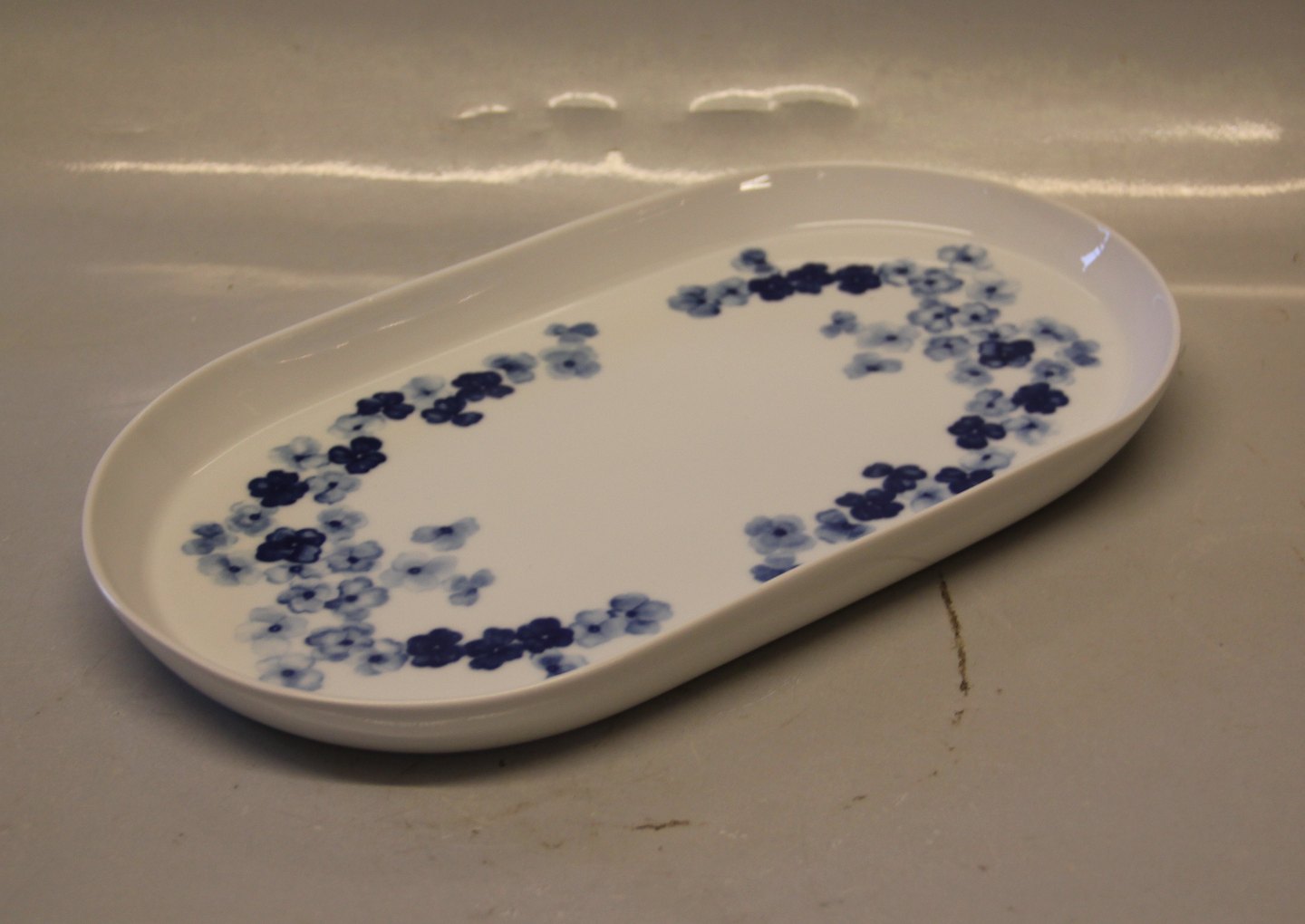 316 Ovalt fad 33 x 18.5 cm (016) B&G Troja: Kraftigt hvidt porcelæn med mønster med blå blomster, form 43 Bing & Grøndahl Troya