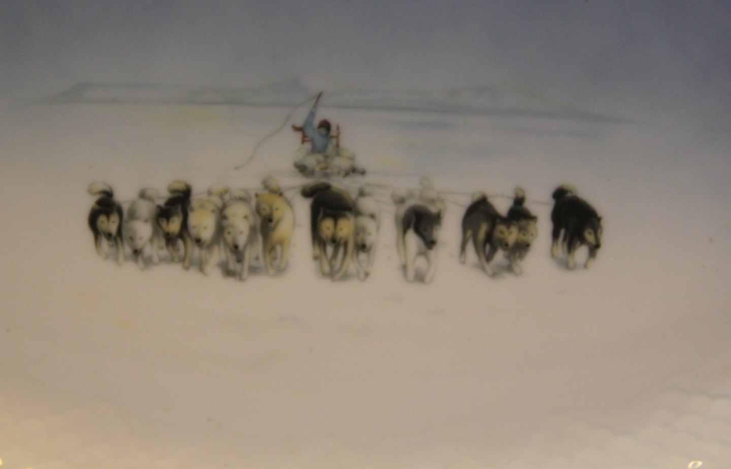 Grønlandske motiver Bing & Grøndahl Kalaallit Nunaanni pingortitaq 11308-215 Grønlandske motiver stort fad 40 x 28 cm (015-315) Hundeslæde - Qimusseq
