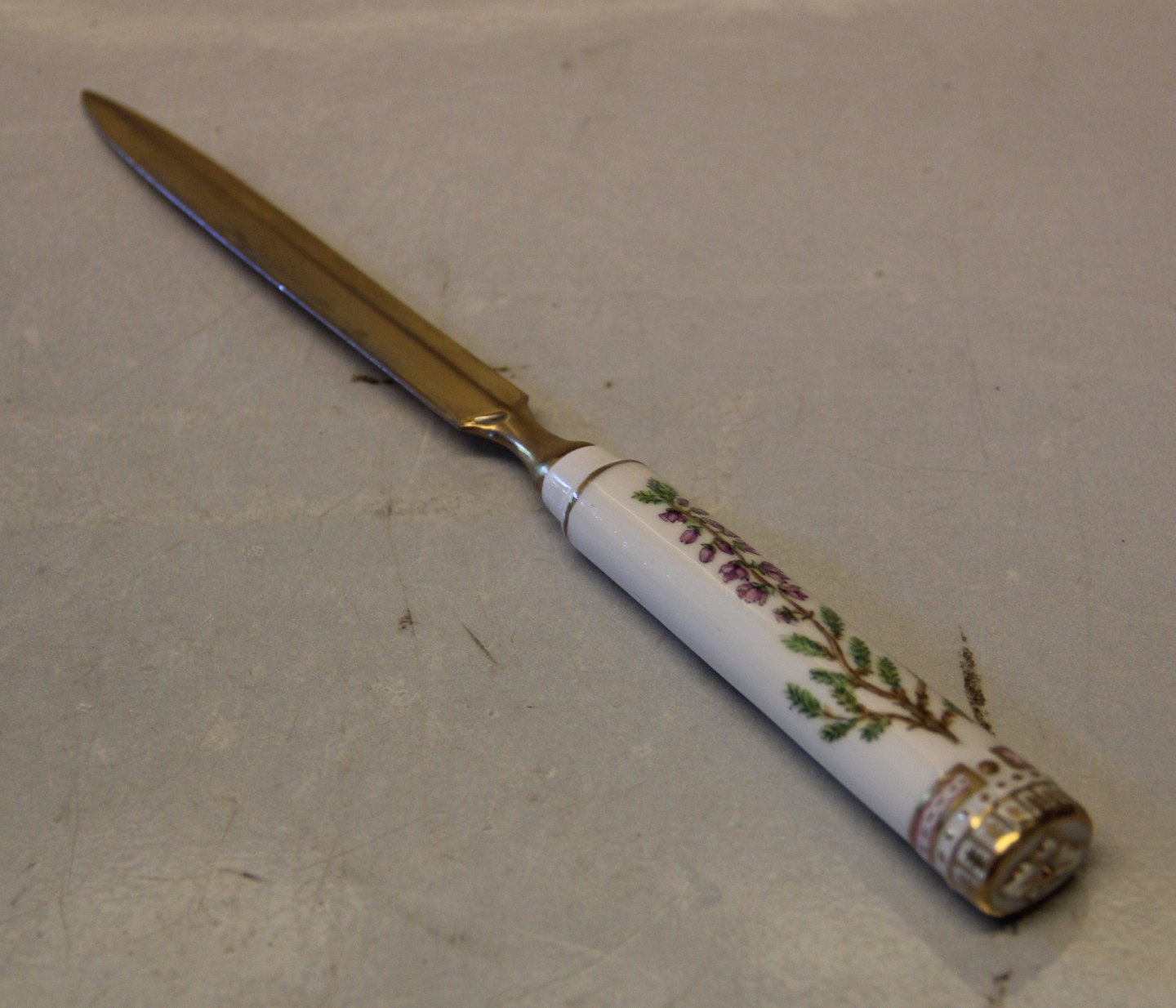Royal Copenhagen Flora Danica Brevkniv 23 cm forgyldt knivblad let slid på forgyldning