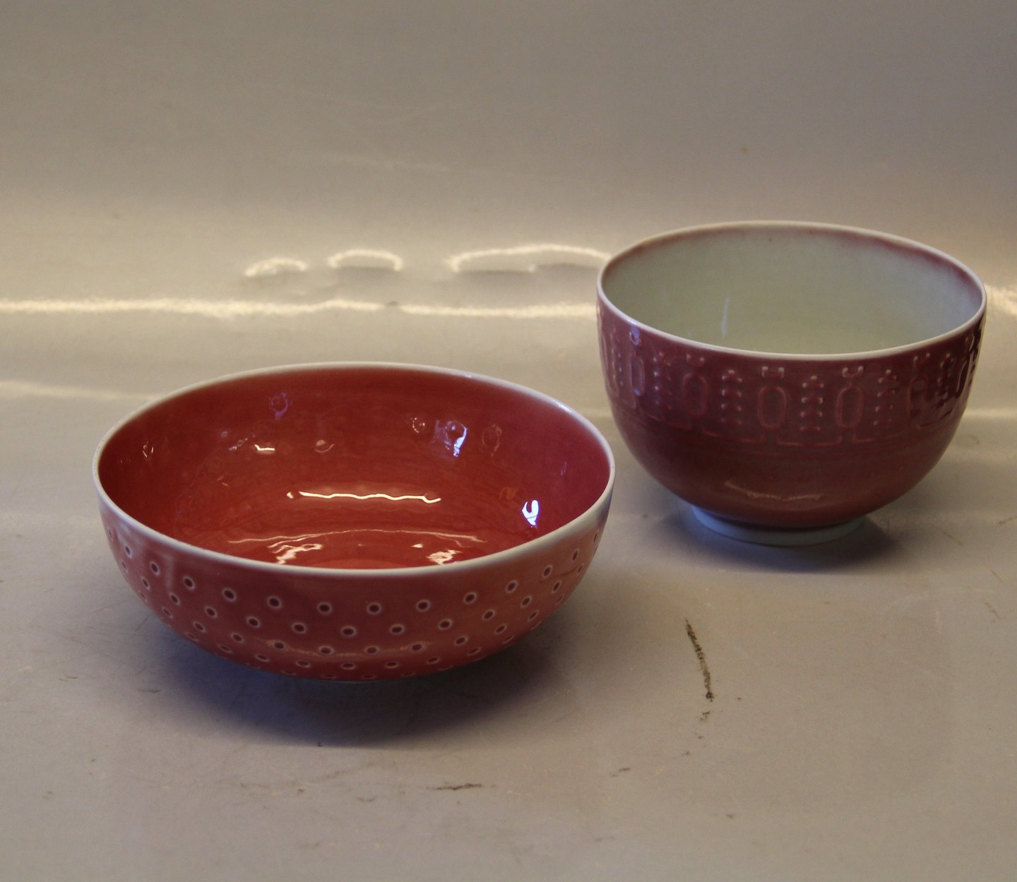 Kongelig Dansk 3603 Kgl. Skål 6 x 16 cm rødlig glasur i relief TO Thorkild Olsen