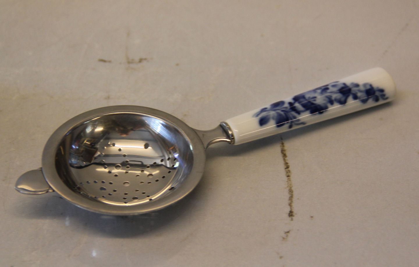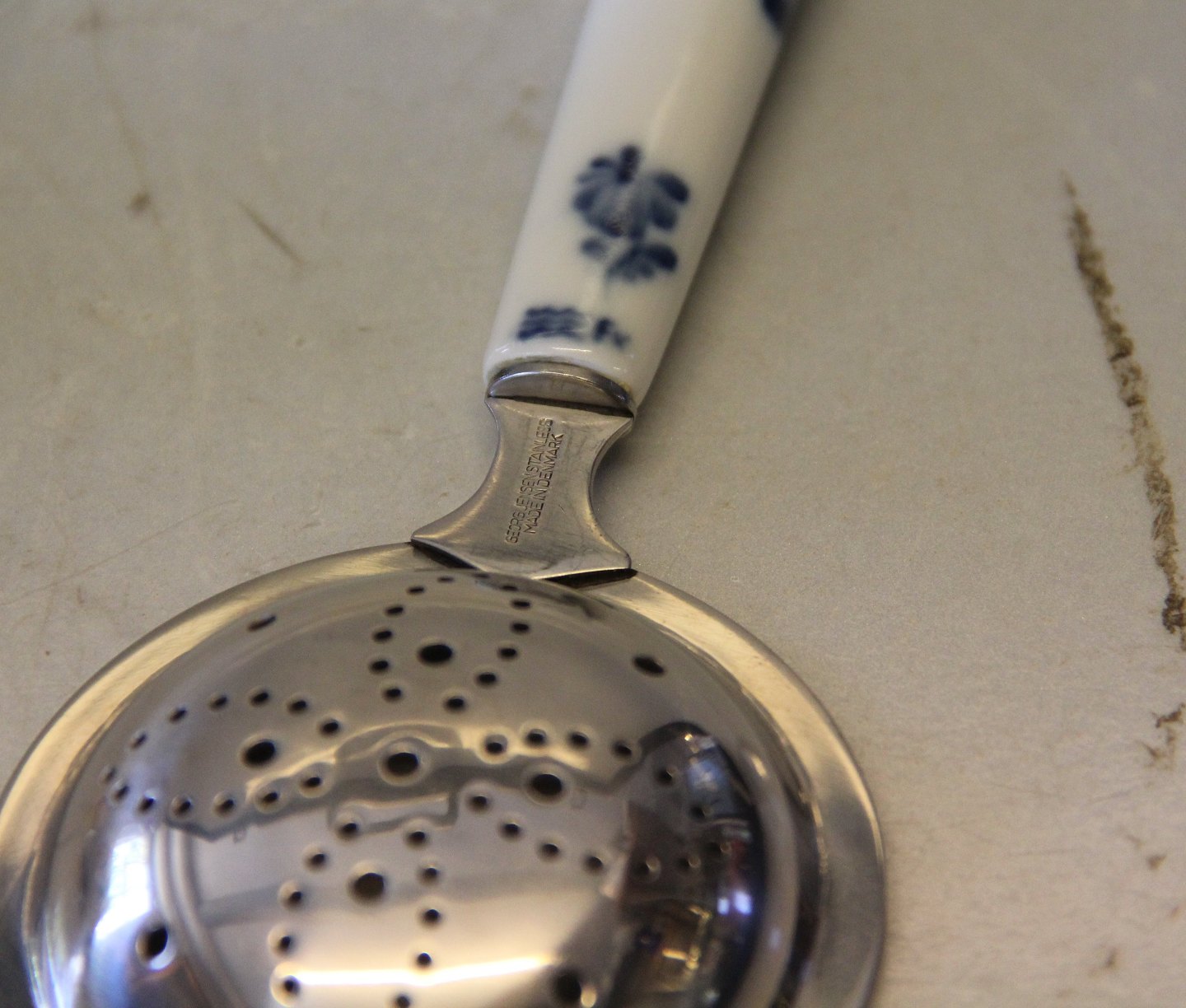 Tesi - strøske 18.5 cm Georg Jensen Stainless Steel med porcelænsskaft Kongelig Dansk Porcelæn Blå Blomst
