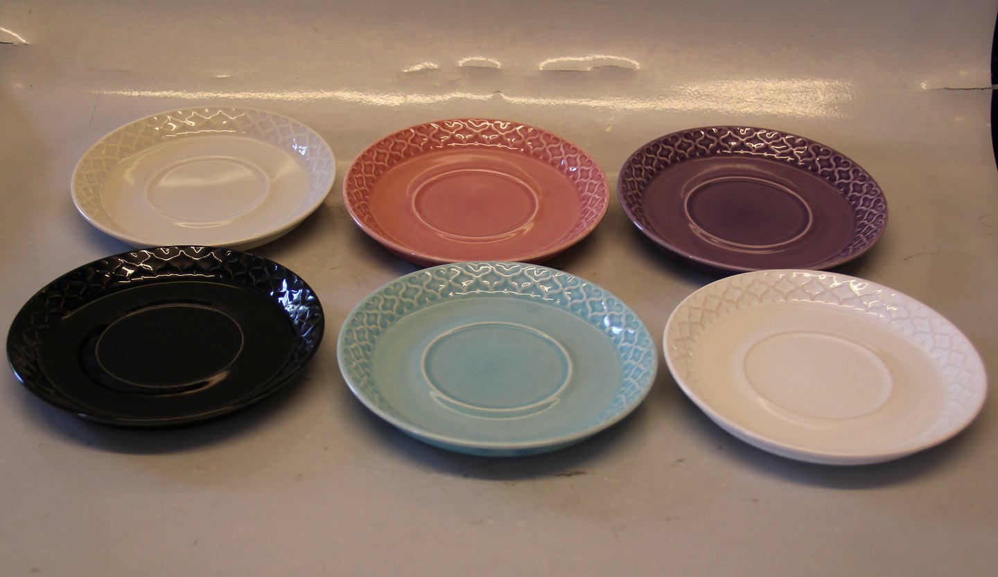 305 Kaffekop og underkop 7,5 cm 1,5 dl PALET - Pink - Rosa Bing & Grøndahl B&G Cordial Quistgaard Nissen Kronjyden stentøjsstel. I fin og hel stand. Bing & Groendahl. Stemplet Kronjyden eller Bing & Grondahl Copenhagen Stoneware: Designet for Kronjyden, Nissen af Jens Harald Quistgaard IHQ