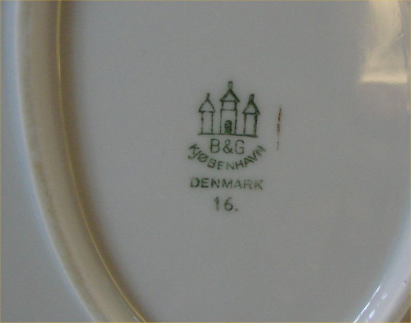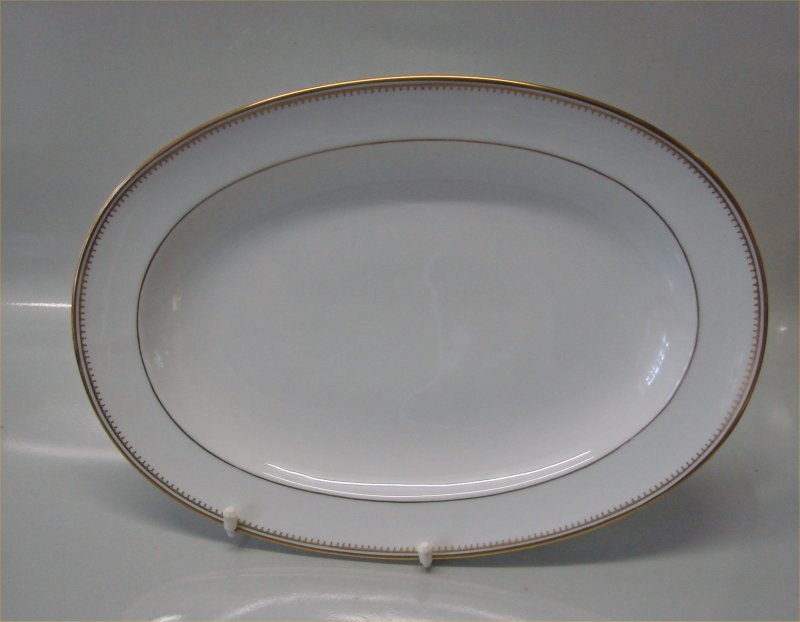 016 Ovalt fad 33,5 cm B&G Menuet: Hvidt porcelæn, takket guldkant, hvid, form 601