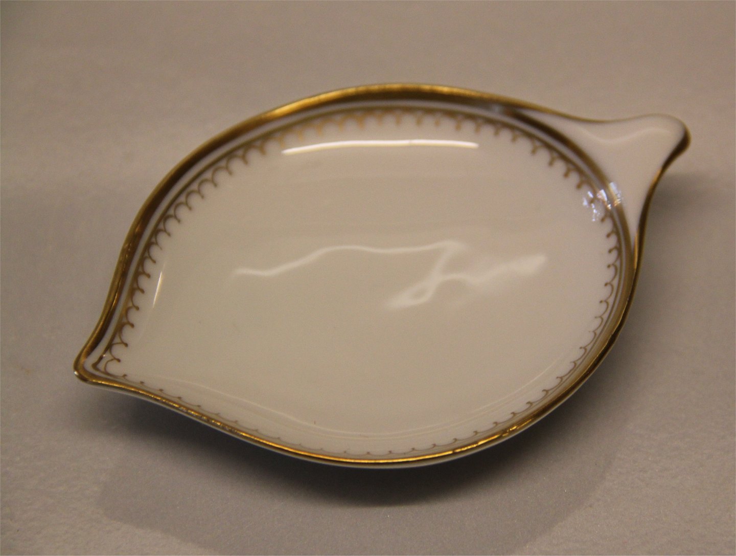 Assietter - kuvertsmør 030 6 200 B&G Menuet: Hvidt porcelæn, takket guldkant, hvid, form 601 Bing & Grøndahl