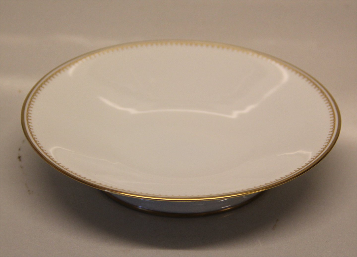 222 Skål på fod, (lille) 3.5 x 17.7cm (427) B&G Menuet: Hvidt porcelæn, takket guldkant, hvid, form 601