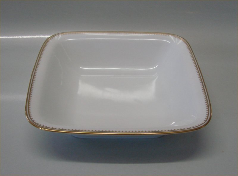 229 Firkantet skål (mellem) 20 x 20 cm (576) B&G Menuet: Hvidt porcelæn, takket guldkant, hvid, form 601