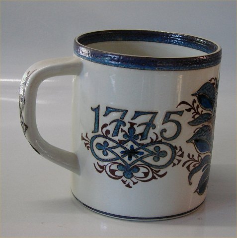 Beskrivelse: 1775-1975 200 års Jubilæumskrus 14 x 12.5 cm Nils Thorsson Baca Royal Copenhagen Aluminia Baca fajance