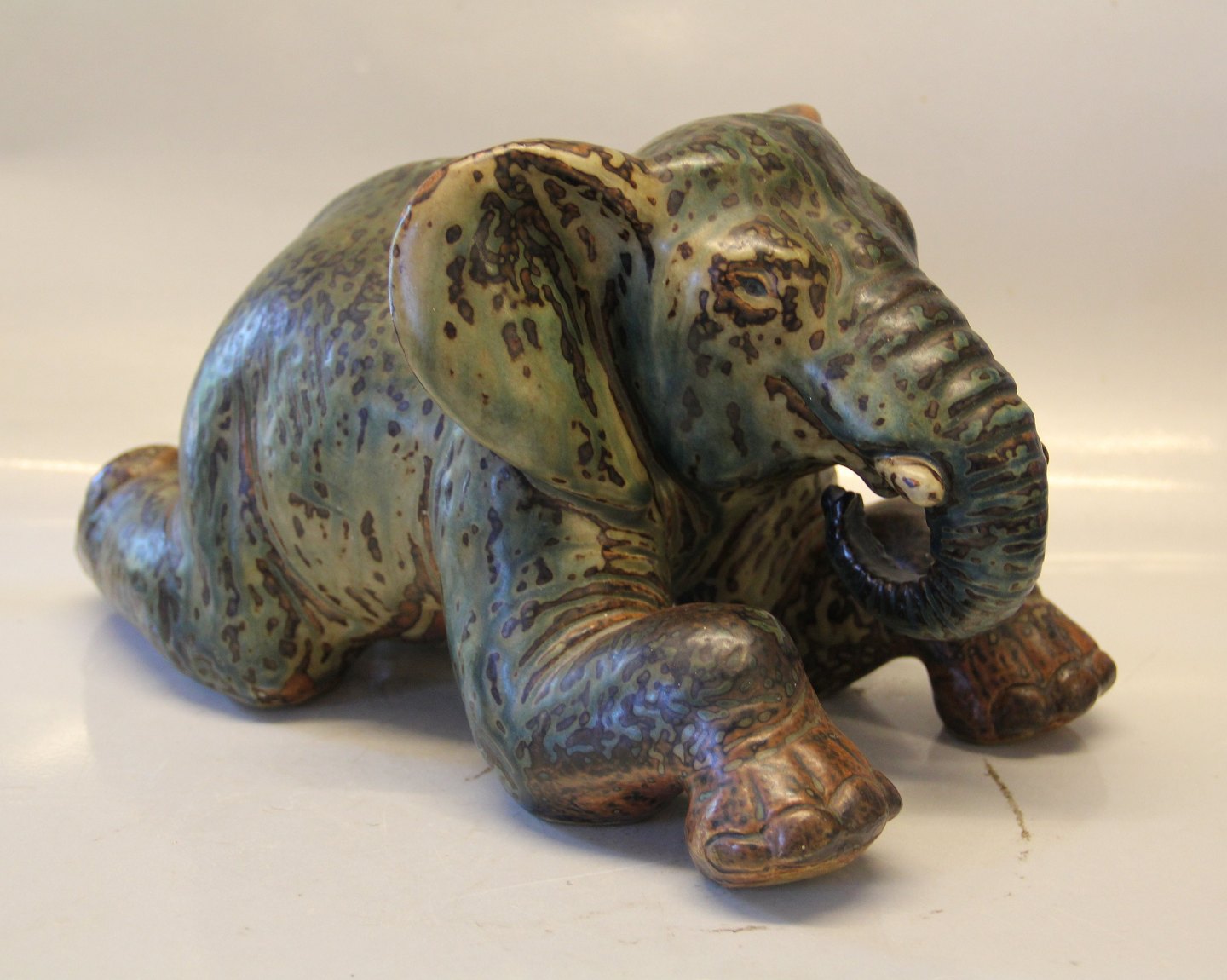 Kongelig Dansk Stentøj Unika Knælende Elefantunge 19 x 31 x 19 cm Karl Larsen