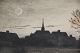 Beskrivelse: Carl Locher Måneskin 30.5 x 38 cm inkluisv guldramme